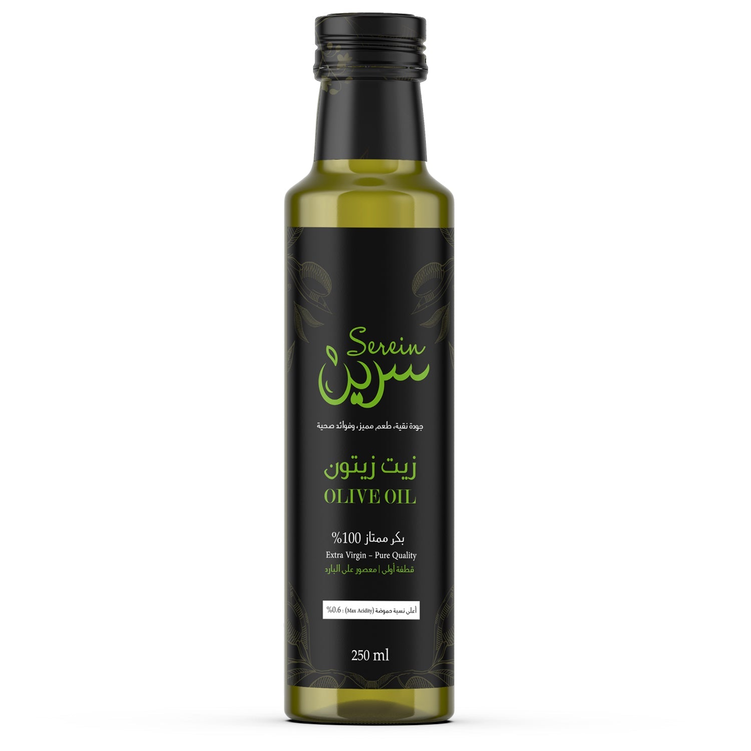 "Serein' extra virgin olive oil is more than just oil; it’s an experience from the heart of Siwa, where olive trees thrive in a pure environment, ensuring every drop is of exceptional quality. With its rich flavors and unique aroma, it adds a special touch to your dishes, from salad dressings and feta cheese to the most delicious traditional recipes.