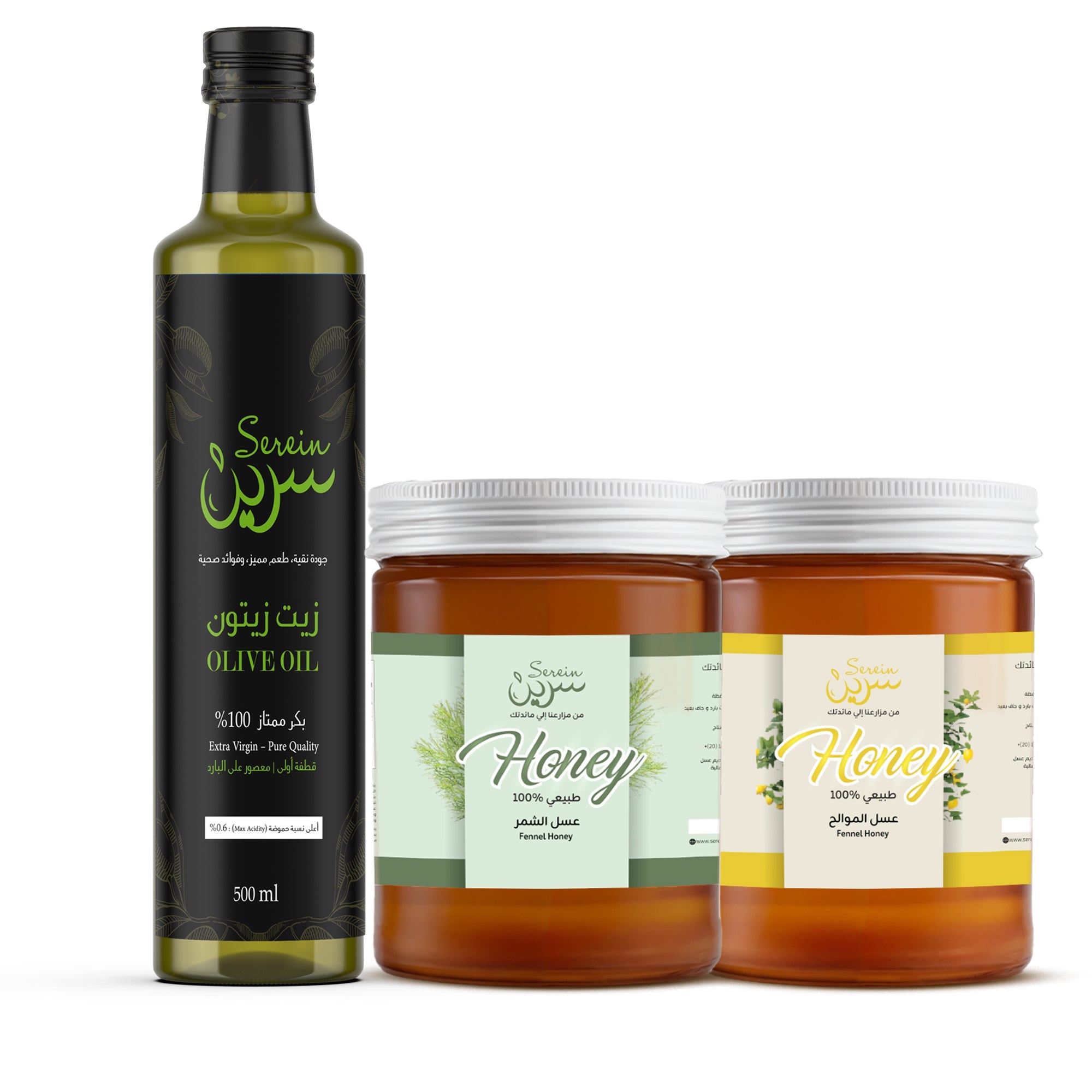 تجمع هذه الباقة زيت الزيتون البكر الممتاز من سرين هو أكثر من مجرد زيت، إنه تجربة من قلب سيوة، أفضل عسل الطبيعي المستخرج بعناية من مزرعتنا، لتمنحك تجربة فريدة من نوعها وفوائد صحية متعددة.